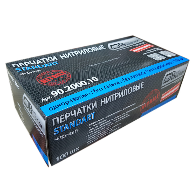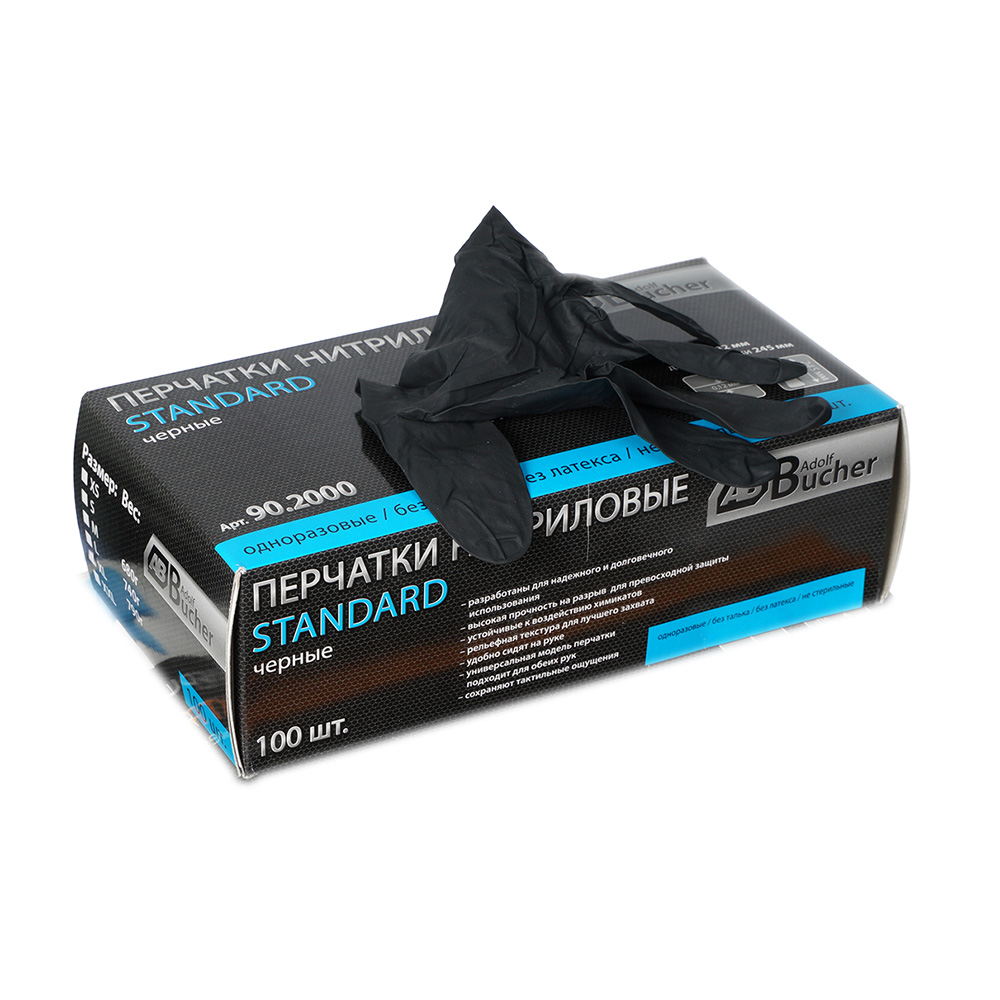 ADOLF BUCHER Перчатки нитриловые, черные СТАНДАРТ, без талька, размер XXL, уп.100шт
