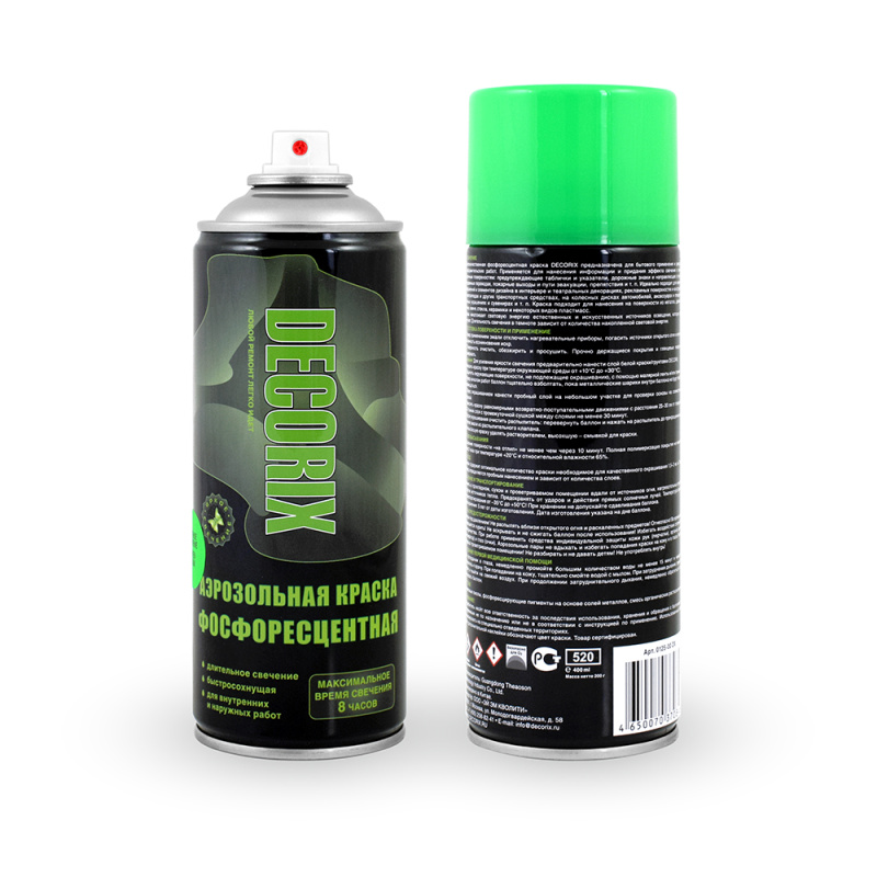 Краска фосфоресцентная DECORIX, зеленое свечение, аэрозоль, 520мл