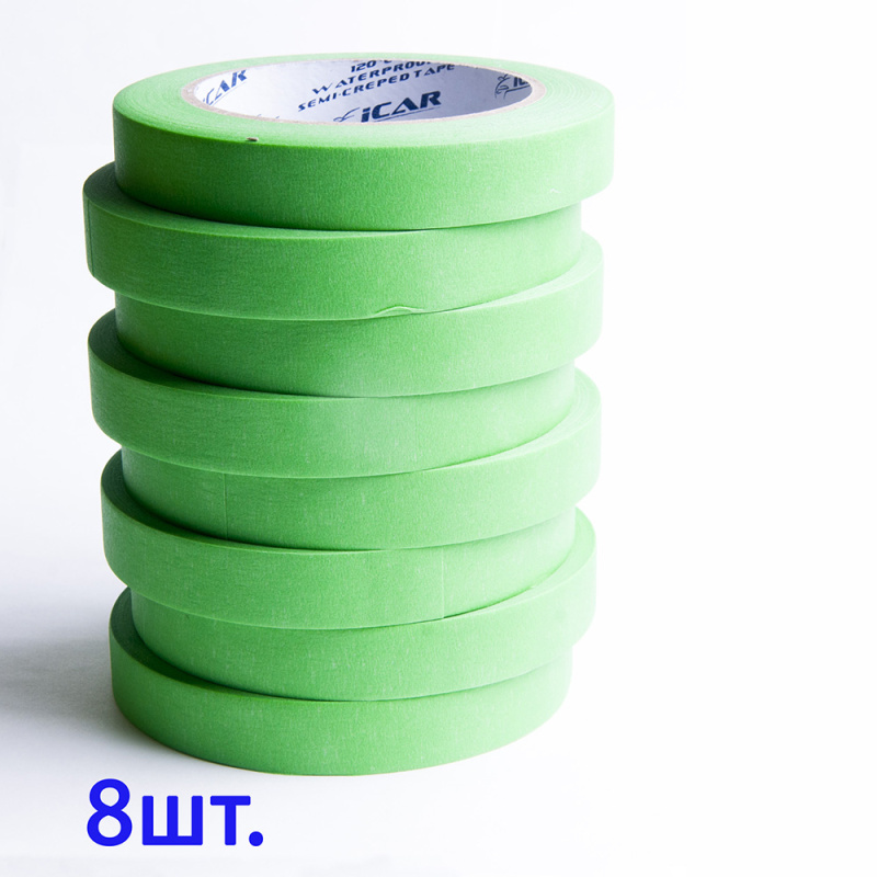 40м х 18мм Малярная лента Зеленая Green ICAR Semicrepped 120С, набор 8шт
