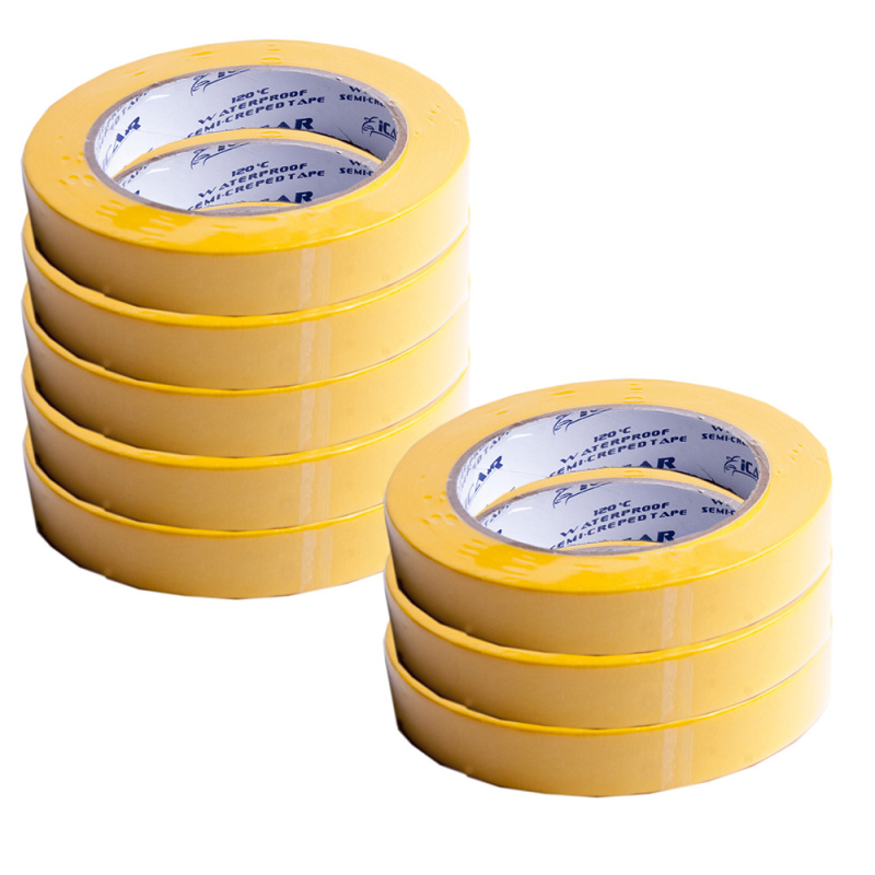 Малярная бумажная клейкая лента ICAR Semicrepped 120С ( t=120°C) - специально разработана в качестве маскировочного материала, при проведении малярных работ, в том числе и для работы с водорастворимыми лакокрасочными материалами.