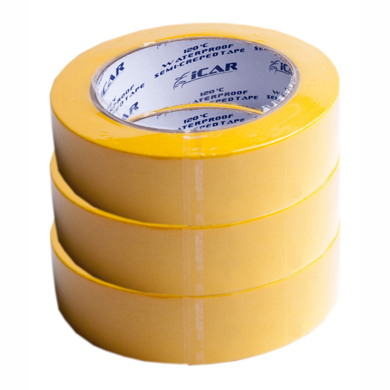 Малярная бумажная клейкая лента ICAR Semicrepped 120С ( t=120°C) - специально разработана в качестве маскировочного материала, при проведении малярных работ, в том числе и для работы с водорастворимыми лакокрасочными материалами.