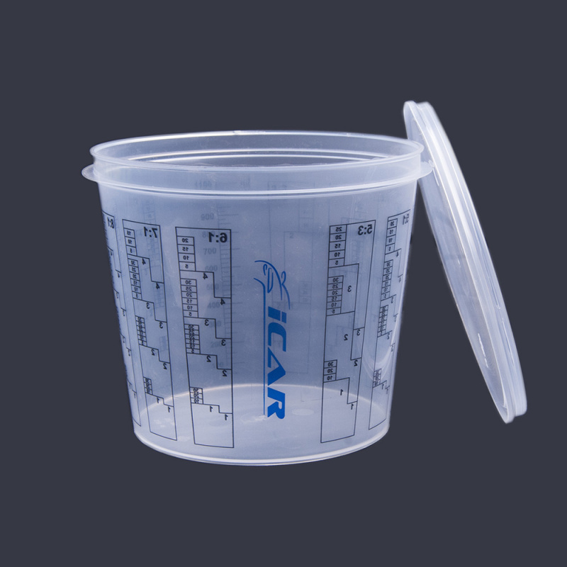 Мерная емкость ICAR для смешивания краски, пластиковая, с крышкой, 1400 мл., набор 25 шт.