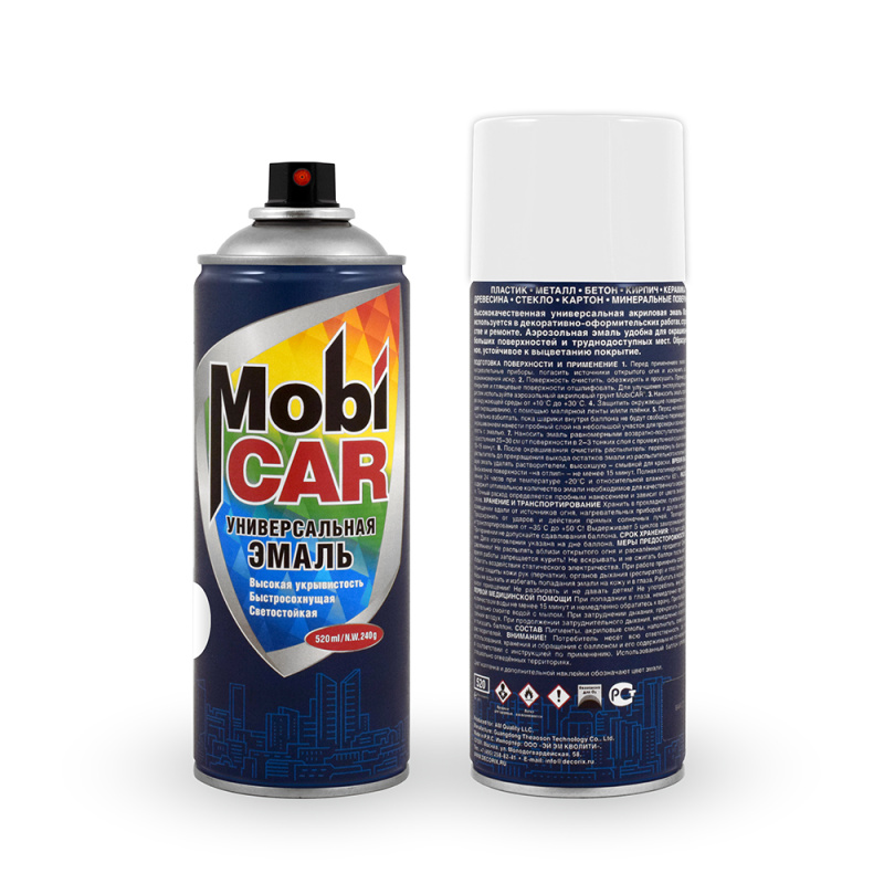 Высококачественная универсальная акриловая эмаль MobiCAR используется в декоративно-оформительских работах, строительстве и ремонте.