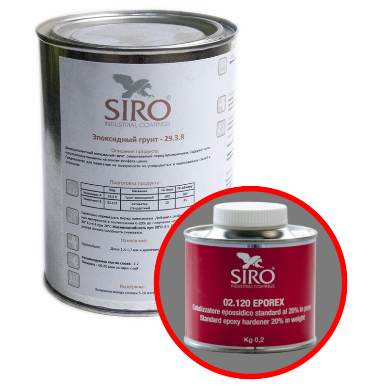 29.3.70121 R SIRO Грунт эпоксидный серый с отвердителем 02.120 R, комплект, уп. 1+0,2кг